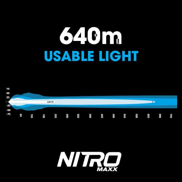 Slim & streamlined with a sleek style, the Nitro Maxx 70W 18” Single Row Light Bars give you mighty performance in a compact design. Featuring our Contrl® and Widr® optics that combine to produce 640m / 2099ft of usable light and incredible beam width, there’s nowhere they can’t go.